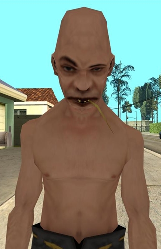 Benny was born in 1967 in Angel Pine, San AndrEas to his parents, who were cousins. In 1968, he gained a brain tumor, which had to be removed. However, his parents could not afford facial reconstruction surgery, which further increased his ugliness.
